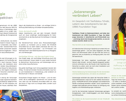 Dass sich nach dem Gender-Workshop, Ende 2023, die Einstellung der Frauen und Männer verändert hat, bemerkte auch unsere Projektkoordinatorin Cornelia. Ende Januar konnte auch sie wieder vor Ort sein. Cornelia ist die Hauptansprechpartnerin unseres Teams in Togo und arbeitet eng mit diesem zusammen. Ihre Zeit vor Ort war gefüllt mit vielen Gesprächen in den Urbis-Themenbereichen Solarenergie, Soziales und Gesundheit, Bildung, Landwirtschaft sowie mit der Leitung und der Buchhaltung. Neben dem Besuch des GIZ-Projekts und GIZ-Büros, traf Cornelia einen von Urbis langjährigen Solartechnikern, war zu Besuch auf der nachhaltigen Farm CPIA und in Schulen mit von Urbis geförderten SchülerInnen. Zudem nutzte sie die Zeit, um gemeinsamen Austausch im Team zu ermöglichen. Sie leitete etwa eine Arbeitssitzung zur effizienten Planung und Durchführung von Projekten. Die dadurch geschaffenen Räume für Austausch und Diskussion sind sehr wichtig, da sie im Alltag und der Zusammenarbeit über die große Distanz nicht gegeben sind.
